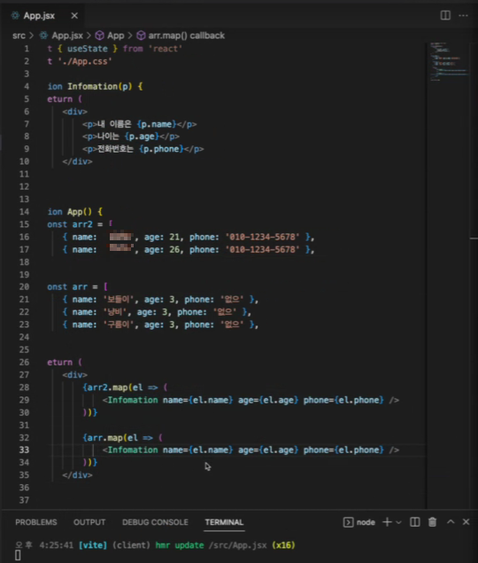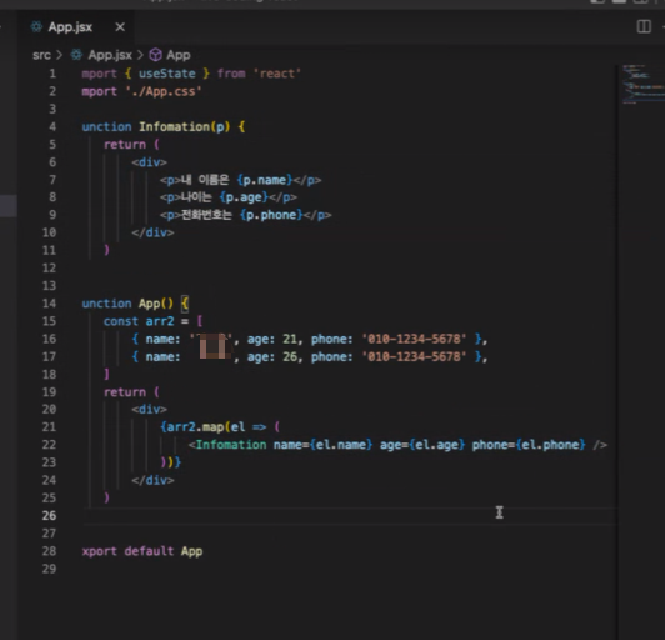2. App์์ ๋ฐฐ์ด๋ง๋ค์ด์ ๋ฐฐ์ด์ map๋๋ ค์ 1๋ฒ๊ณผ์ ์์ ๋ง๋ ์ปดํฌ๋ํธ๋ฅผ ์ฌ๋ฌ ๊ฐ ์ถ๋ ฅํ๊ธฐ.