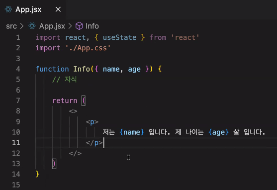 <p>๋ด ์ด๋ฆ์ {p.name}</p>