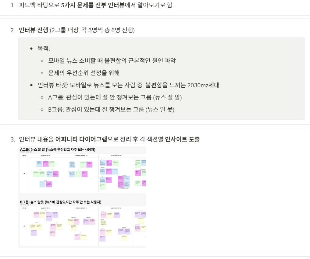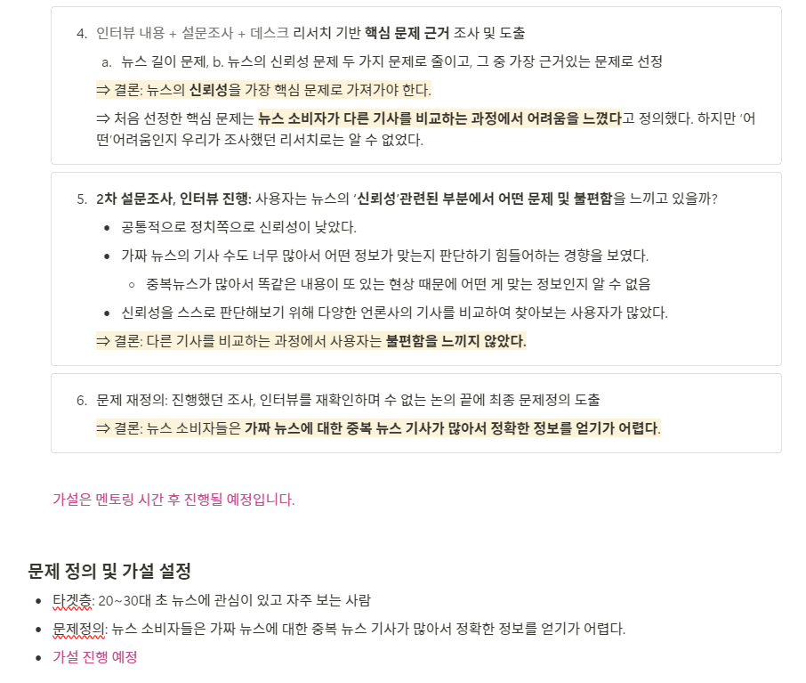- ์ง๊ธ 5๊ฐ์ง ์ค์ ํ ๊ฐ๋ฅผ ์ ์ ํ๊ธฐ ์ ์ ์ด๋ค ๊ฒ ๋ ์ค์ํ์ง, ์ฌ์ฉ์๋ ์ด๋ค ๊ฒ์ ์ค์ํ๊ฒ ์๊ฐํ๋์ง ์ธํฐ๋ทฐ๋ฅผ ํด์ ๊ทธ ๋ฐ์ดํฐ๊น์ง ํฉ์ณ์ ๋ฌธ์ ๋ฅผ ์ ์ํด์ผํ๋ค. ์ง๊ธ ๋ฐ์คํฌ๋ฆฌ์์น, ์ค๋ฌธ์กฐ์ฌ์ ๋ฆฌ์์น๋ง์ผ๋ก ๊ทผ๊ฑฐ๊ฐ ์ฝํ๋ค.