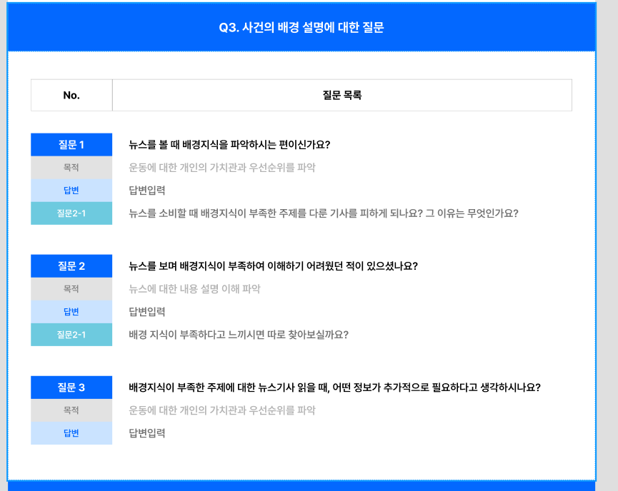 ์ด๋ฐ์์ผ๋ก ์ธํฐ๋ทฐ์ง๋ฅผ ์์ฑํ๋ค. ์ธํฐ๋ทฐ์ง ์์ฑํ๋ ๊ณผ์ ์ ๋ชฉ์ ์ ํญ์ ์๊ฐํด์ผํ๊ธฐ ๋๋ฌธ์ ์ด๋ ค์ด ๊ฒ ๊ฐ๋ค.