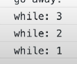 console.log(`while: ${i}`);