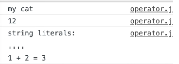console.log(`string literals: 1 + 2 = ${1 + 2}`);