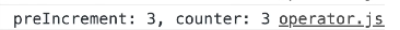 - ๋ณ์(counter) ์์ ++๋ฅผ ๋ถ์ด๋ ๊ฒ์ ๋ณ์(counter)์ 1์ ๋ํ ํ ๊ทธ ๋ณ์(counter)์ ๊ฐ์ด ํด๋น ๋ณ์(preIncrement) ์ ๊ฐ์ด๋ผ๋ ๋ป.