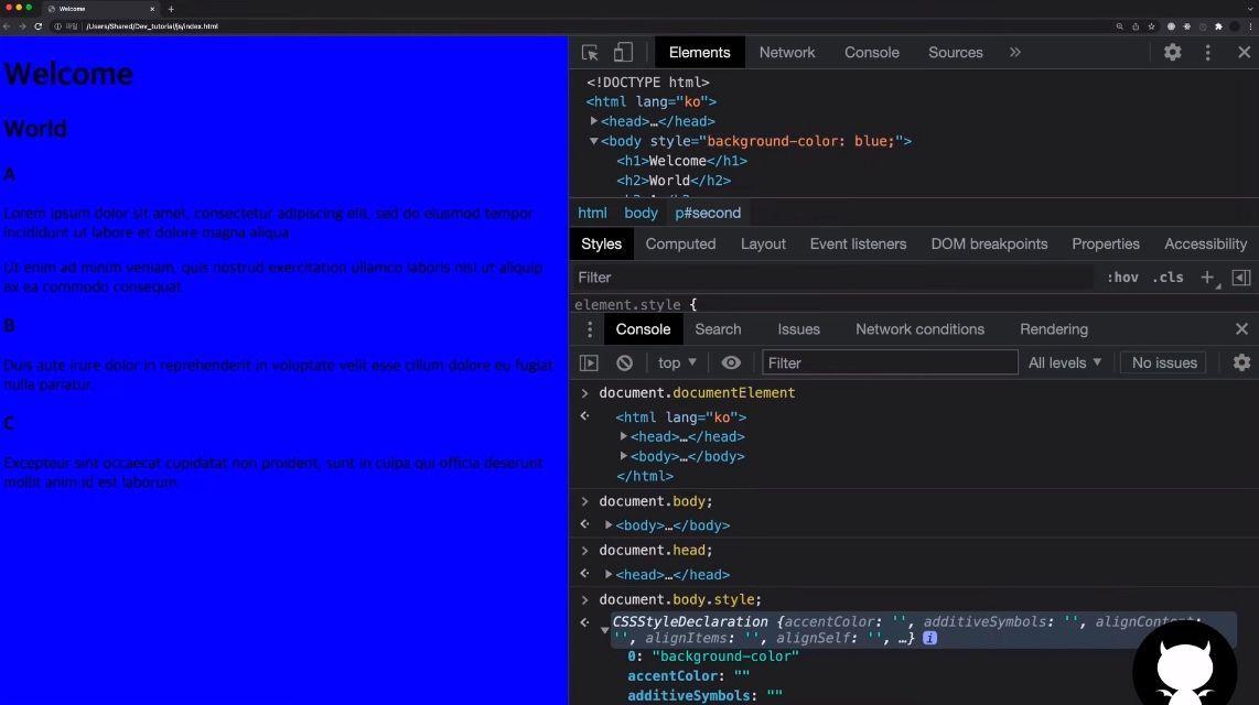 document.body.style; // style์ ์ ๊ทผ์ด ๊ฐ๋ฅ