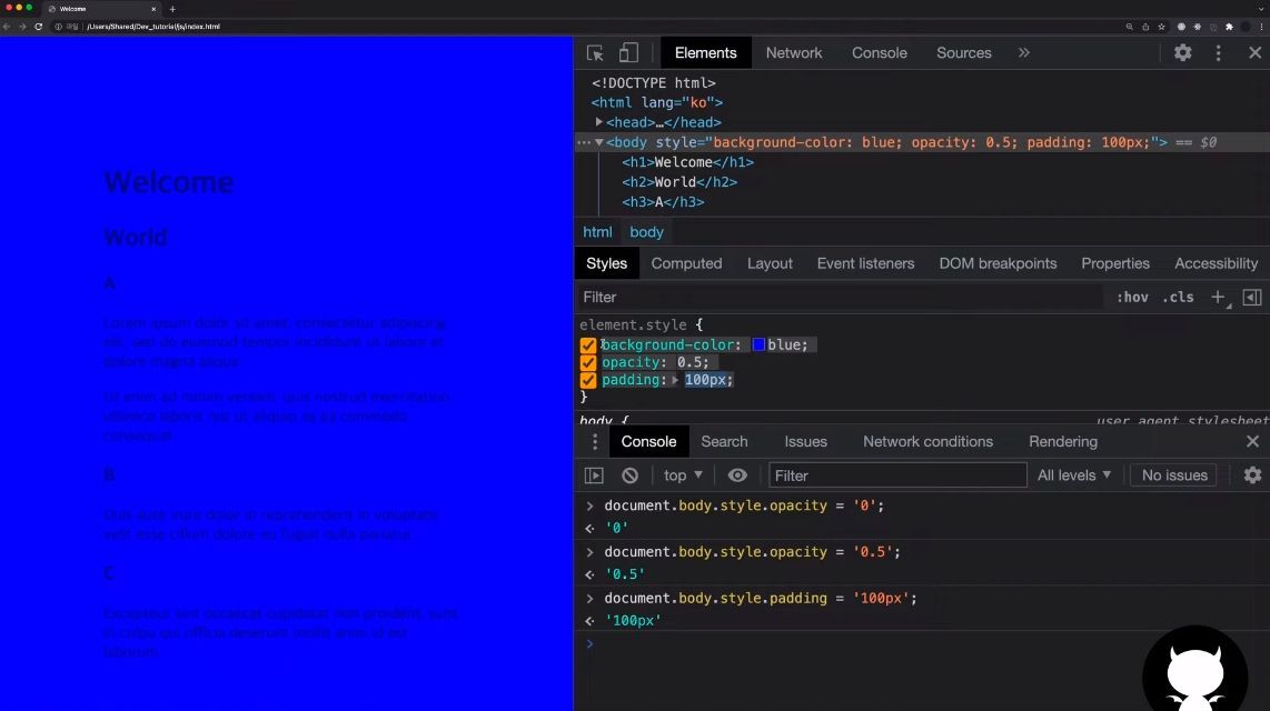 document.body.style.opacity = '0.5'; //ํฌ๋ช