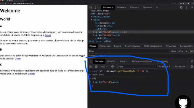 ์ ๊ฐ๋ฐ์๋ค์ querySelector๋์ ์ getElementById๋ฅผ ๋๋ง์ด์ด๋ค๊ณ ๋งํ๊ณ ์๋ค.