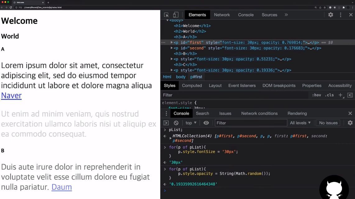 ์ด๋ฒ์๋ querySelectorAll์ ํตํด ๊ฐ์ ์๋ฆฌ๋จผํธ๋ฅผ ์ป์ด๋ณด๊ณ ์ ํ๋ค.