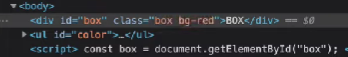 | //콘솔창 box.className; ' ' box.className = 'bg-red'; <'br-red |