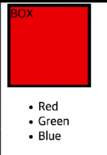 배열처럼 보이는게 나오고 그밑에 class 2개를 보여준다. (box, bg-red)