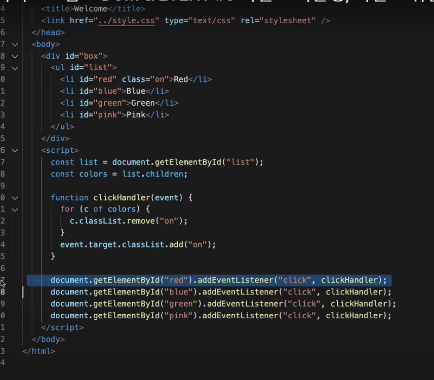 - clickHandler๋ li์ ๊ฐ๊ฐ ๋ฑ๋ก๋๊ณ ์๋ค. (ํ๋จ document์ ์๋ ๋ถ๋ถ)