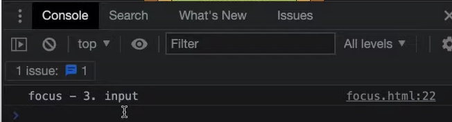 - ๊ฐ ์์๋ค์ focus์ด๋ฒคํธ ๋ฐ์ํ๊ฑฐ๋ blur์ด๋ฒคํธ๊ฐ ๋ฐ์ํ ๋ log๋ฅผ ์ฐ์ด์ค๋ค.