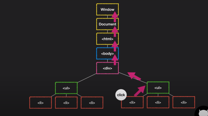 - li๋ฅผ ํด๋ฆญํด๋ณด๋ฉด li, ul, div, body์์ผ๋ก ์ฐํ๋ค.
