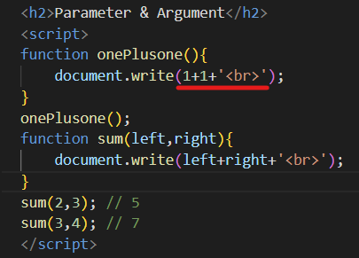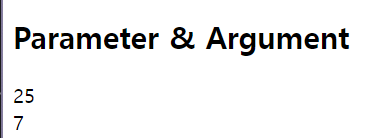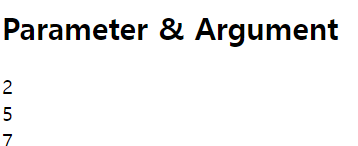 ์ฐ๋ฆฌ๊ฐ ํจ์๋ก ์ ๋ฌํ๋ 2,3์ด๋ผ๋ ๊ฐ์ ์ธ์, argument๋ผ๊ณ ํ๋ค.