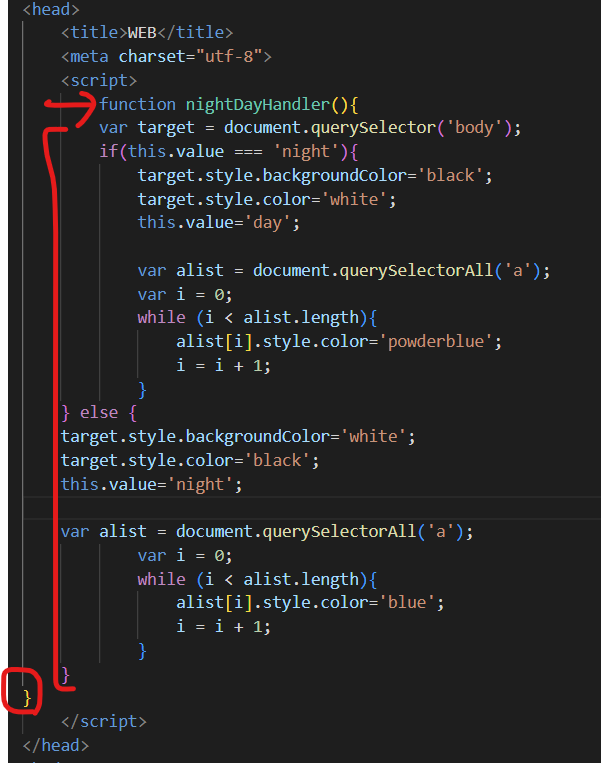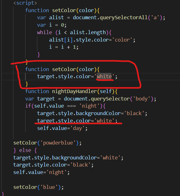 function nightDayHandler();๋ก ๋ฐ๊พผ๋ค.