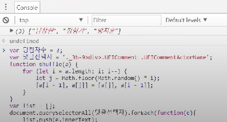 *์ฝ์์์ ์คํ๋๋ JS๋ ํ์ฌ ์นํ์ด์ง ๋์์ผ๋ก ์คํ๋จ.