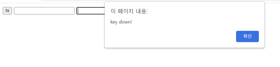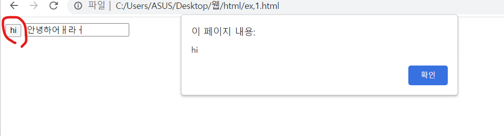 - ๋ฒํผ ํด๋ฆญ์, ์๋ฐ์คํฌ๋ฆฝํธ๊ฐ alert('hi')์ด๋ฒคํธ ์คํ.