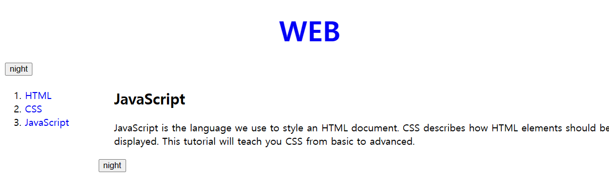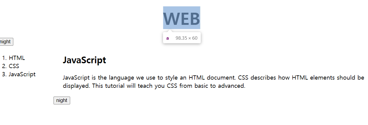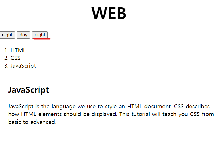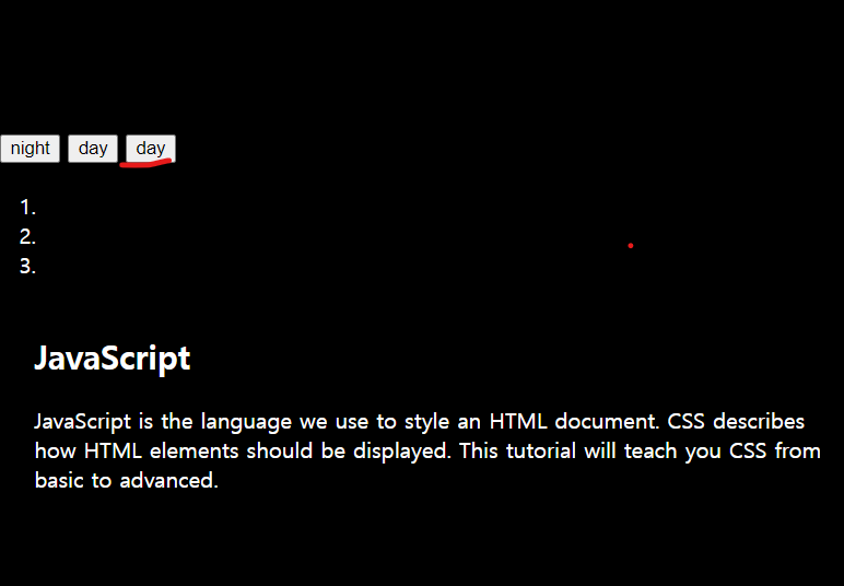 ์ ํํ ๋ถ๋ถ์ ํด๋ฆญํ์ ๋ night๊ณผ day๋ฒํผ์์ ๋ํ๋๋ ๋ชจ์ ์ด๋ค.