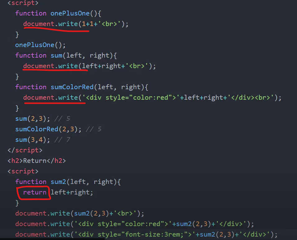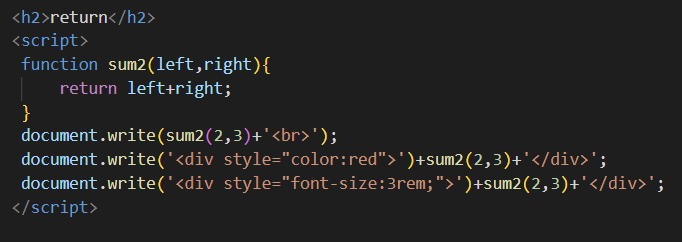 sum(2,3); ์ ๋ํ ํํ์์ 5๋ก ๋ง๋ค๊ณ ์ถ๋ค๋ฉด, ์ฐ๋ฆฌ๋ return ์ด๋ผ๋ ๊ฒ์ ์์์ผํ๋ค.