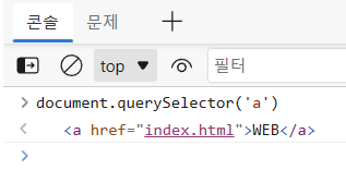 - querySelector : ๋ฉ์๋ (๊ฐ์ฒด์ ์ํด์๋ ํจ์)