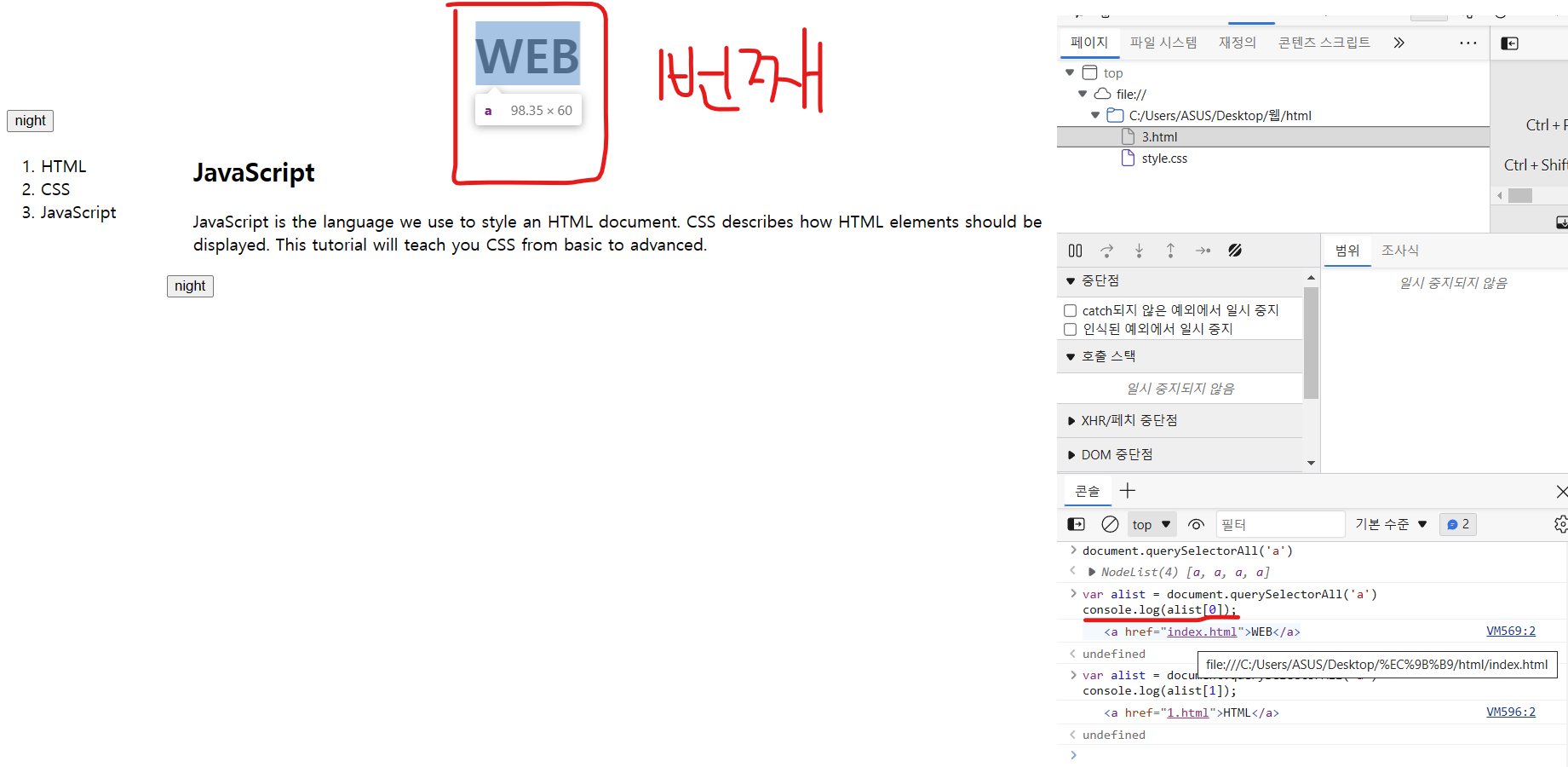 HTML๊ณผ JavaScript์ ๋ง๋จ 3 (์ฝ์)