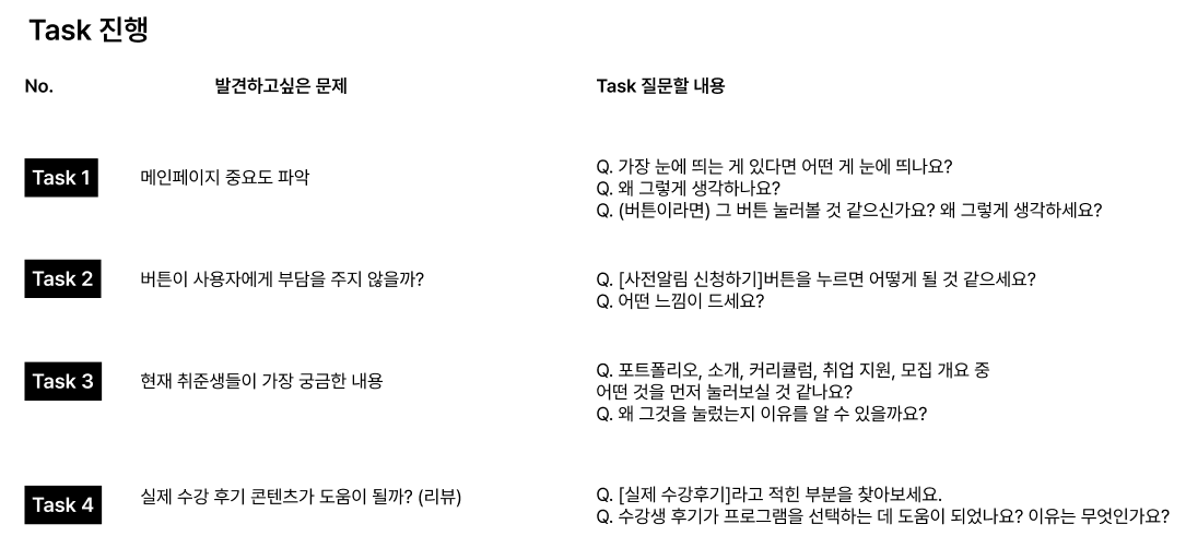 ์ฌ์ฉ์์๊ฒ ํ์คํธ/๋ฏธ์ ์ ์ฃผ๋ ๊ฒ! ๊ทธ๋ฆฌ๊ณ ๊ทธ ๋ฏธ์ ์ ์ํํ๋ ๋์ ์ฌ์ฉ์๋ฅผ ๊ด์ฐฐํ๋ฉด์ ์ง๋ฌธํด์ผํ๋ค.