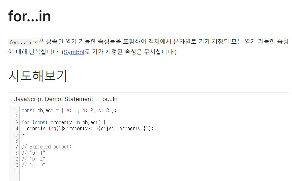 - for...in ์ ์ฐ๋ฉด ๋๋ค.