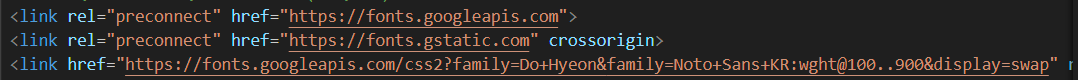 ์์ ํ๊ณ ์๋๊ฑด ๊ตฌ๊ธ ํฐํธ๋งํฌ๋ฅผ ๋ณต์ฌํด์ ์ ์ฉ์ํจ ์ฝ๋๋ค. ๊ตฌ๊ธ ํฐํธ ๋ค์ด๊ฐ์ ๋ค์ด๋ฐ๊ธฐ ํ๋ฉด ์ฃผ์๋ฅผ ๋ณต์ฌํ๋ ๋ฒํผ์ด ์๋๋ฐ ๊ทธ๊ฑฐ ๋๋ฅด๊ณ html๊ณผ css์ ๊ฐ ๋ณต์ฌํ๋ผ๋ ๋๋ก ๋ณต์ฌํด์ ๋ถ์ฌ๋ฃ์ผ๋ฉด ํฐํธ๊ฐ ์ ์ฉ๋๋ค!