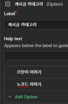 ์นดํ ๊ณ ๋ฆฌ์ ๊ฒฝ์ฐ '์ต์ '์ด๋ผ๋ ์์ฑ์ ์ ์ฉํ๋ฉด ๋๋๋ฐ ํ๋จ์ +add option์ด ์๋ค.