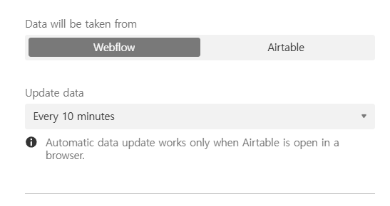 ๋ฐ์ดํฐ์ ์์ /์ถ๊ฐ๊ฐ ์นํ๋ก์ฐ์์ ์ด๋ฃจ์ด์ง๋ ์นํ๋ก์ฐ๋ก ํ๊ณ 10๋ถํ ์ ๋๊ณ ์ ๋ฐ์ดํธ ๊ฐ๋ฅํ๋๋ก ์ค์ ํ๋ค.
