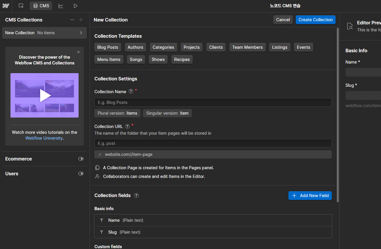 ์ข์ธก ์๋จ์ ์๋ CMS๋๋ฌ์ ์ถ๊ฐ๋ฒํผ ๋๋ฅด๋ฉด ์ด๋ ๊ฒ ๋ฌ๋ค!
