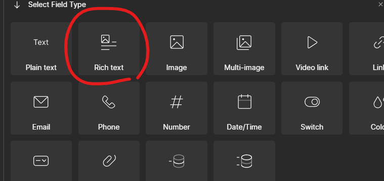 ์ด ๊ฒฝ์ฐ, ์์ดํ ์ด๋ธ์์๋ long text - ํ๋จ Enable rich text formatting ์ ๋๋ฅด๋ฉด ๋์ผํ ๊ธฐ๋ฅ์ผ๋ก ๋์๋๋ค.