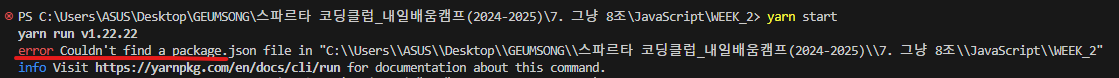 yarn start ๋ช ๋ น์ด๋ฅผ ์คฌ๋๋ฐ ์๋ฌ๊ฐ ๋ ๋ฒ๋ ธ๋ค.