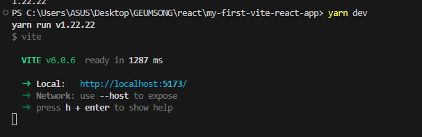 ๋ด๊ฐ yarn devํ ์์น๋ my-first-vite-react-app์ธ๋ฐ