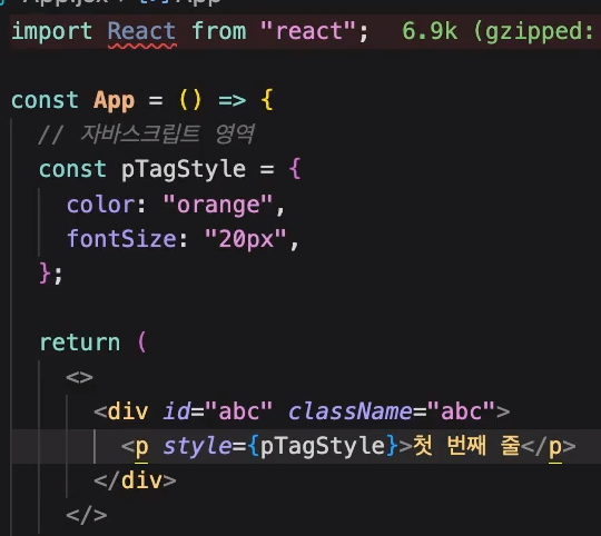 <div style={{ color: "orange", fontSize: "20px" }}>์ฒซ ๋ฒ์งธ ์ค</div>